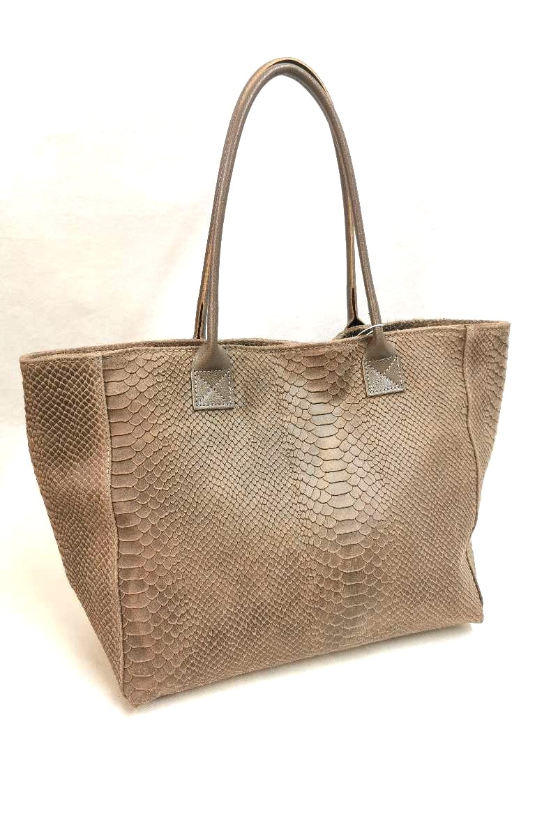 パイソン型押しレザーが、いつものコーディネートのクラス感をUP、さりげなく個性的なイタリアンレザーのトートバッグです。